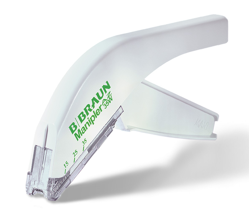 Manipler AZ 35W to sterylny stapler jednorazowego użytku do zszywania skóry, umożliwiający zastosowanie 35 nierdzewnych stalowych zszywek na koniec dowolnej procedury chirurgicznej.